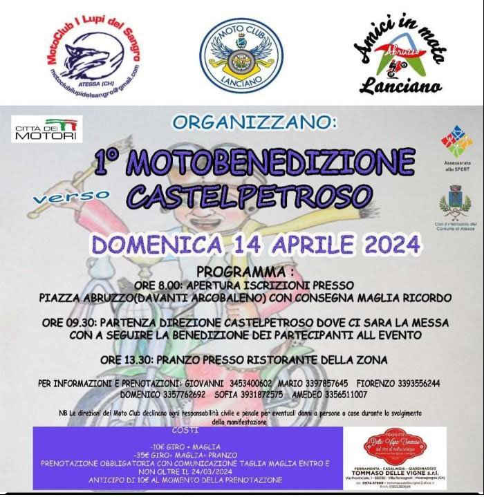 ORE 8.00: APERTURA ISCRIZIONI PRESSO PIAZZA ABRUZZO (DAVANTI ARCOBALENO) CON CONSEGNA MAGLIA RICORDO ORE 09.30: PARTENZA DIREZIONE CASTELPETROSO DOVE CI SARA LA MESSA CON A SEGUIRE LA BENEDIZIONE DEI PARTECIPANTI ALL’EVENTO