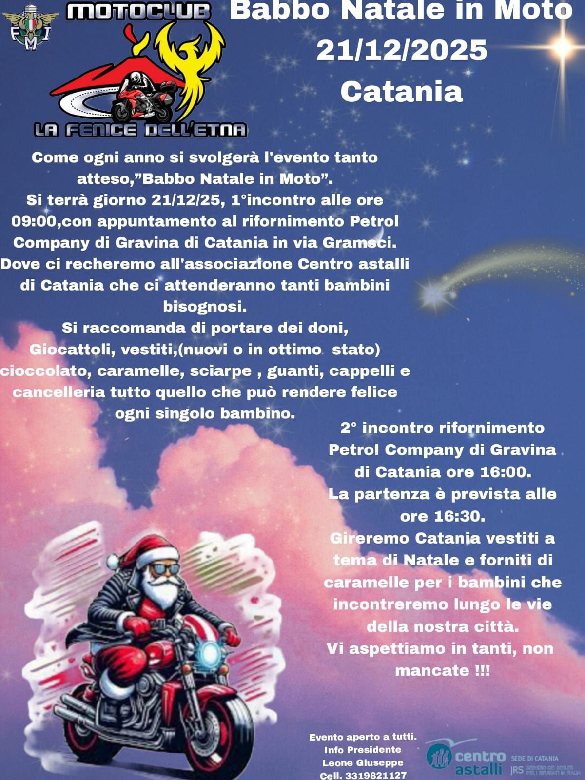 Si terrà giorno 21/12/25, 1°incontro alle ore 09:00,con appuntamento al rifornimento Petrol Company di Gravina di Catania in via Gramsci.