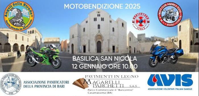 Domenica 12 gennaio 2025 si terrà la VII° edizione della MOTOBENEDIZIONE presso la Basilica di San Nicola a Bari con la partecipazione di moto club, associazione motociclistiche, biker, club, e tanti motociclisti che come ogni anno si ritrovano per dare inizio alla attività sportiva dell’anno con la benedizione del Signore.