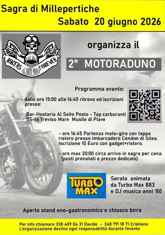 Salve the date: 20 GIUGNO 2026 Il 2º Motoraduno della Sagra di Millepertiche sta arrivando!