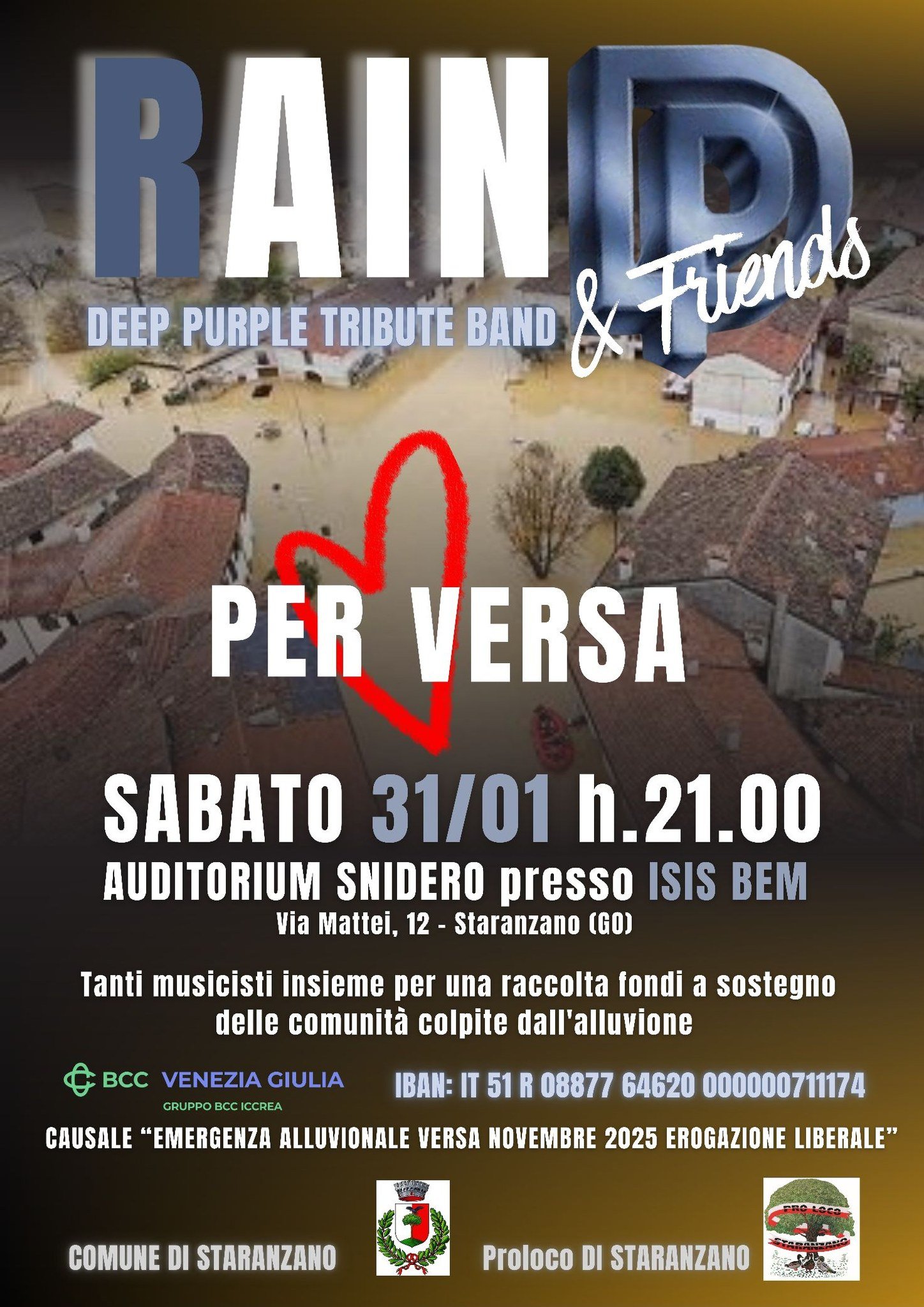 I Rain storica Tribute Band dei Deep Purple, torna live con un sacco di amici musicisti e per aiutare chi è stato colpito dall’alluvione di novembre.