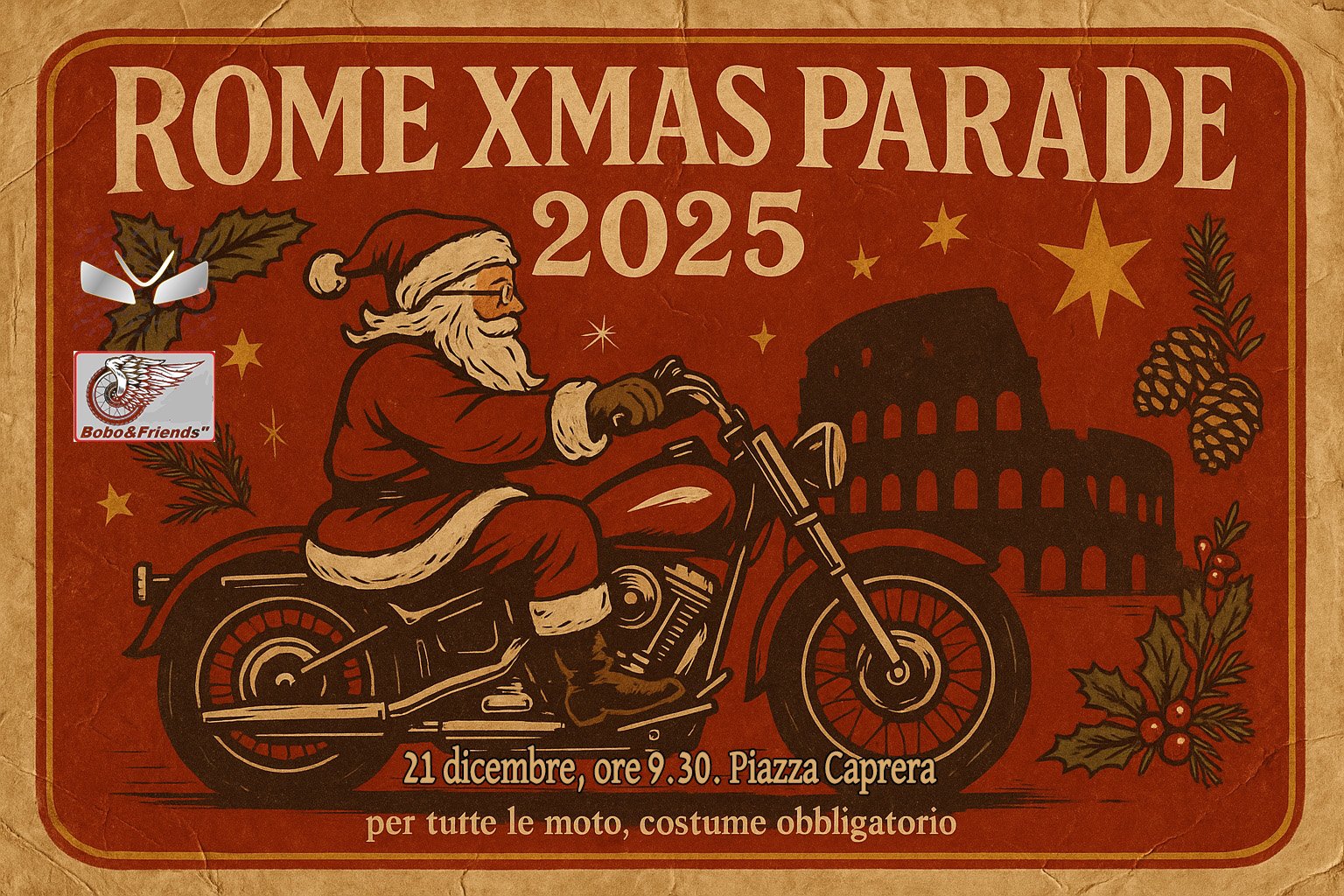 Tradizionale parata di Babbi Natale in moto per le vie di Roma. Costume obbligatorio per tutte le moto, vespe e lambrette