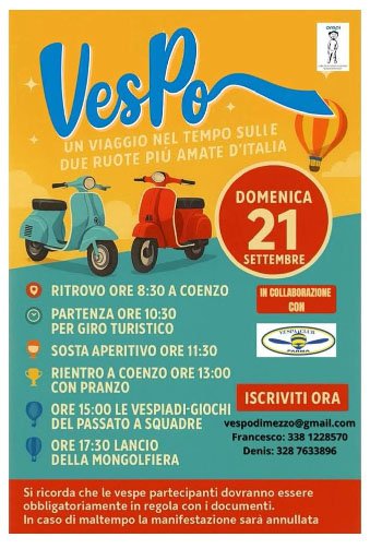 Si ricorda che le vespe partecipanti dovranno essere obbligatoriamente in regola con i documenti.