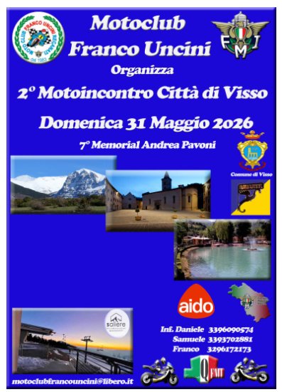motoclubfrancouncini@libero.it Vi aspettiamo domenica 31 Maggio 2026 dalle ore 8,30 a Visso nel meraviglioso panorama dei Monti Sibillini Programma ancora da definire .