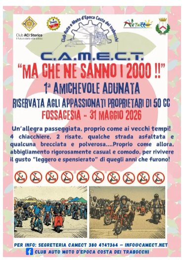 INFO@CAMECT.NET 1ª AMICHEVOLE ADUNATA RISERVATA AGLI APPASSIONATI PROPRIETARI DI 50 CC Un’allegra passeggiata, proprio come ai vecchi tempi! 4 chiacchiere, 2 risate, qualche strada asfaltata e […]