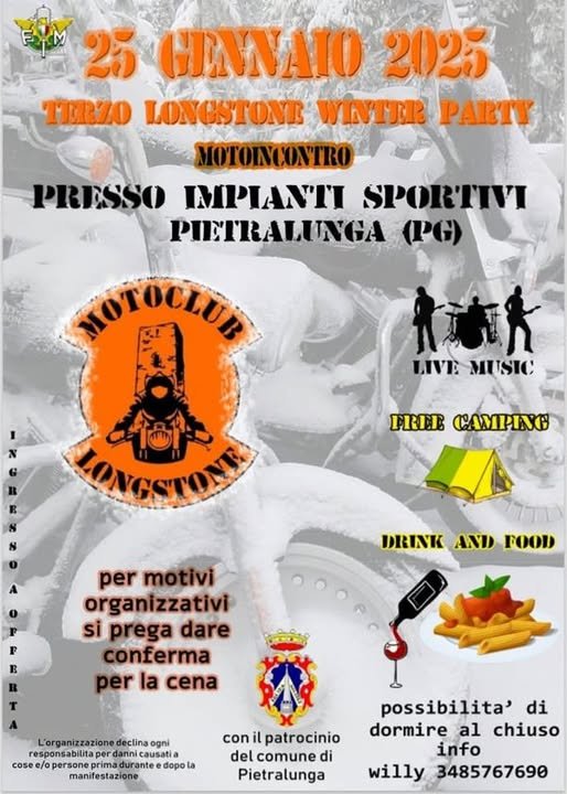 motoclublongstone@libero.it Vi aspettiamo come sempre con un bel fuoco acceso, del buon Vin Brule' e con tanta voglia di divertirsi!!! Dalle 21 inizio dei live con: […]