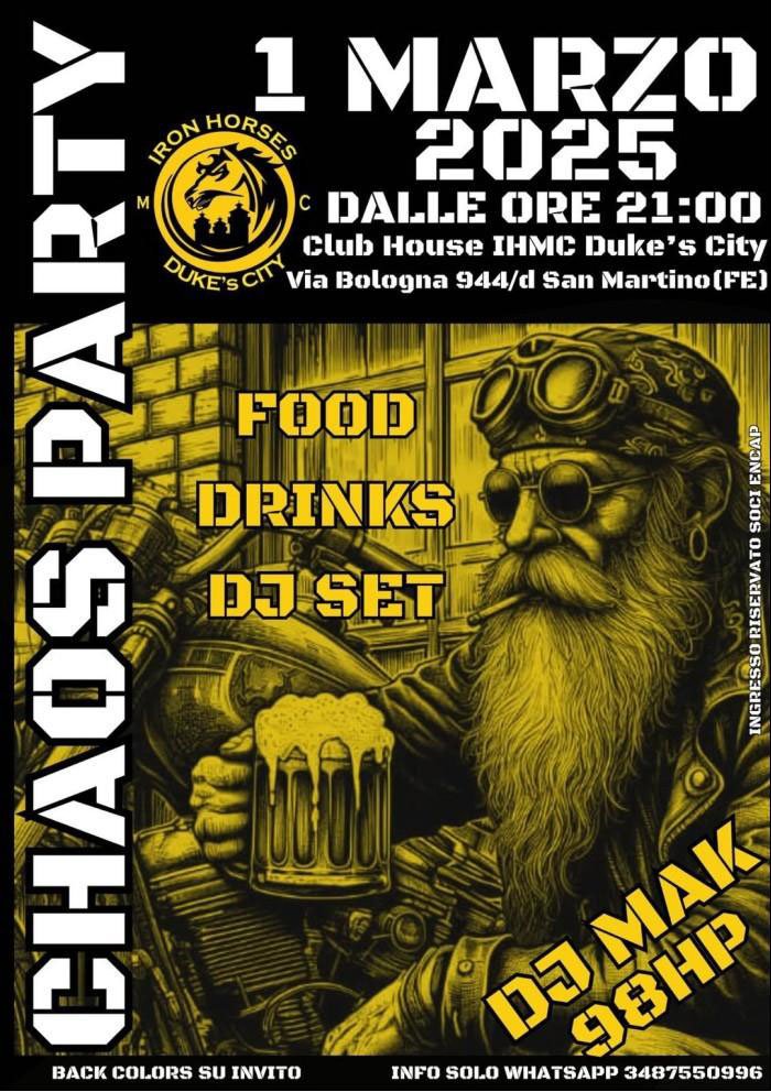 Organizzatore: Black Devils MC Modena SABATO 29 A PARTIRE DALLE 21:00 FESTA PRESSO CLUB HOUSE BLACK DEVILS MC MODENA