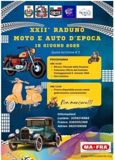 motocluborte@gmail.com Quest’anno, ricorre il nostro XXII° Raduno di Auto e Moto D’Epoca, si terrà il 15 Giugno, presso il Piazzale antistante la stazione FS di Orte. […]