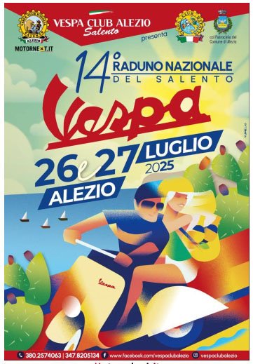 alezio@vespaclubditalia.it Are you ready??? SABATO 26 e DOMENICA 27 LUGLIO si terrà ad Alezio LE il 14° RADUNO NAZIONALE DEL SALENTO STAY TUNED!!!