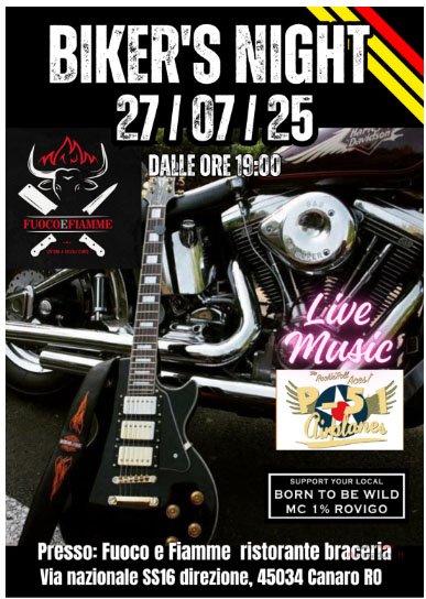Serata Bikers presso Fuoco e Fiamme ristorante braceria Vi aspettiamo per passare una bella serata insieme ,musica live e carne alla griglia per gli appassionati BBQ