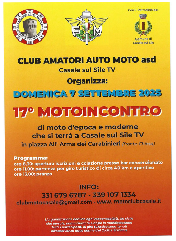 PROGRAMMA Ore 9.30 Ritrovo in Piazza Matteotti. Iscrizione €5 (colazione e gadget inclusi) Ore 10.30 Partenza motogiro tra le campagne della Lomellina Ore 12.30 Pranzo € […]