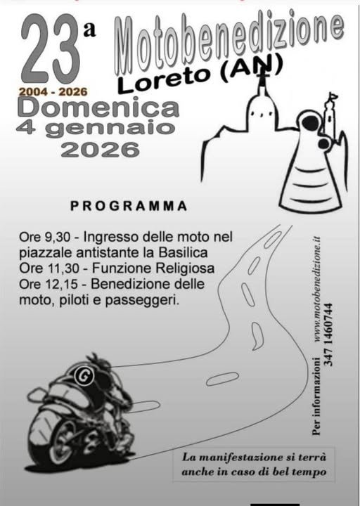 info@motoclubmonza.it MOTO CLUB MONZA 33ma BEFANA DEL MOTOCICLISTA 6 Gennaio 2026 MANIFESTAZIONE MOTOTURISTICA A SCOPO BENEFICO ORGANIZZATA DAL MOTO CLUB MONZA “OSCAR CLEMENCIGH” Manifestazione aperta a […]