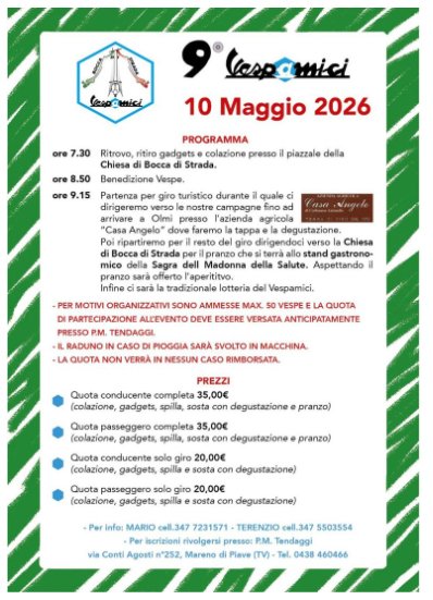 automotoarsego@gmail.com - 08.30 RITROVO IN CENTRO PAESE ISCRIZIONI e COLAZIONE insieme • 10.40 BENEDIZIONE delle PATENTI • 11.30 SOSTA APERITIVO in Piazza Camerini a Piazzola sul […]