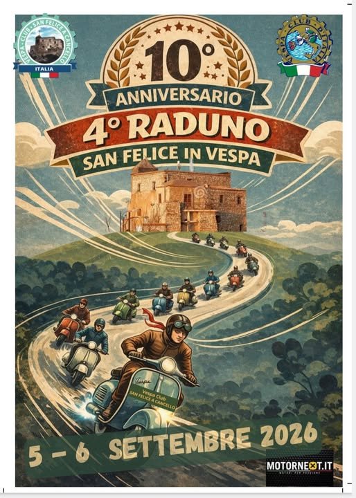 sanfeliceacancello@vespaclubditalia.it Un raduno speciale per festeggiare 10 anni di passione, condivisione e, soprattutto, tante Vespe! Un’occasione unica per celebrare insieme questo traguardo straordinario. Restate connessi, presto […]