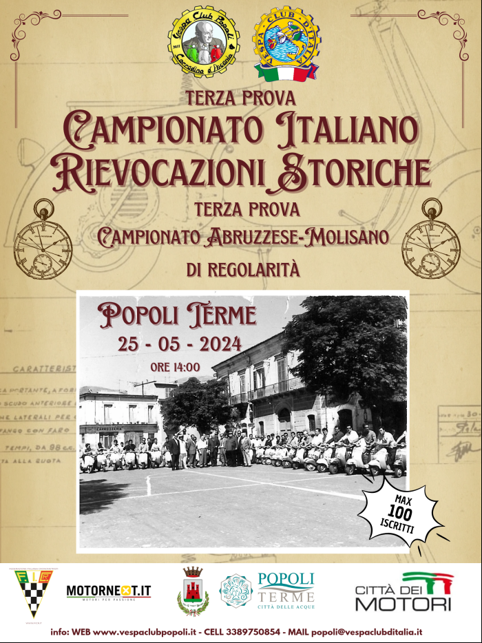 Organizzatore: Vespa Club Popoli popoli@vespaclubditalia.it PROGRAMMA 25 MAGGIO 2024 • ORE 10:00 RITIRO PACCO PARTECIPANTE (sede VC Popoli in p.zza della Libertà n 18) • ORE […]