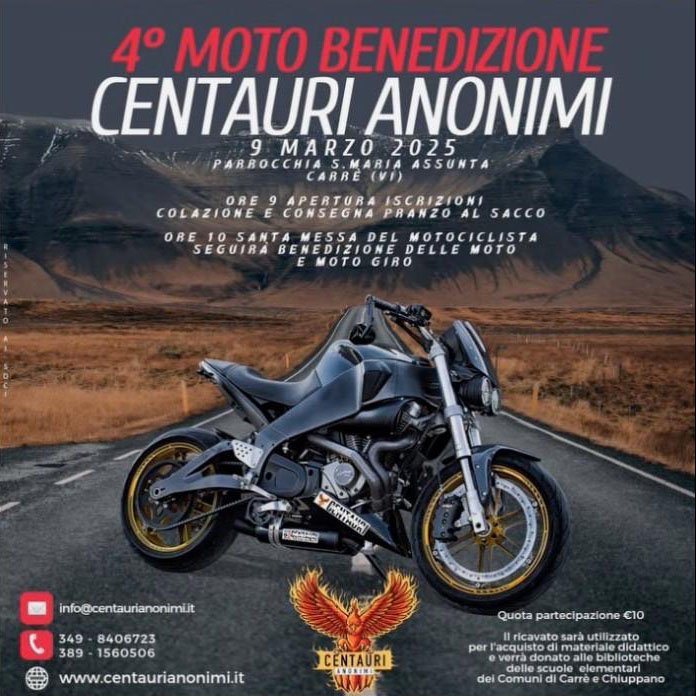 Vicenza Veneto, Vicenza, VI, ItaliaOrganizzatore: ASD Motoclub Montebello Vicentino Motoclubmontebello.info@gmail.com Benedizione delle moto e dei caschi Parcheggio moto dalle ore 10.15 Benedizione dopo la messa delle 10.30 Stand con Panini […]
