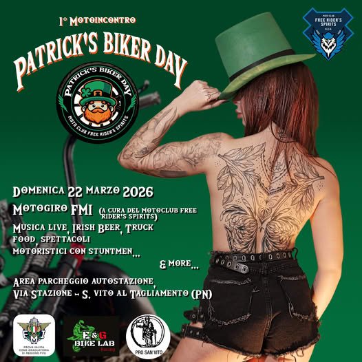 1° MOTOINCONTRO “PATRICK’S BIKER DAY” 2026 Motoraduno San Vito al Tagliamento Pordenone