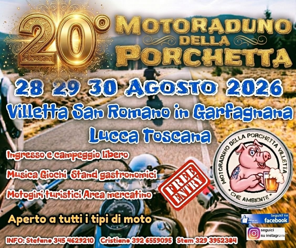 20° MOTORADUNO DELLA PORCHETTA 2026 Motoraduno Villetta San Romano in Garfagnana Lucca
